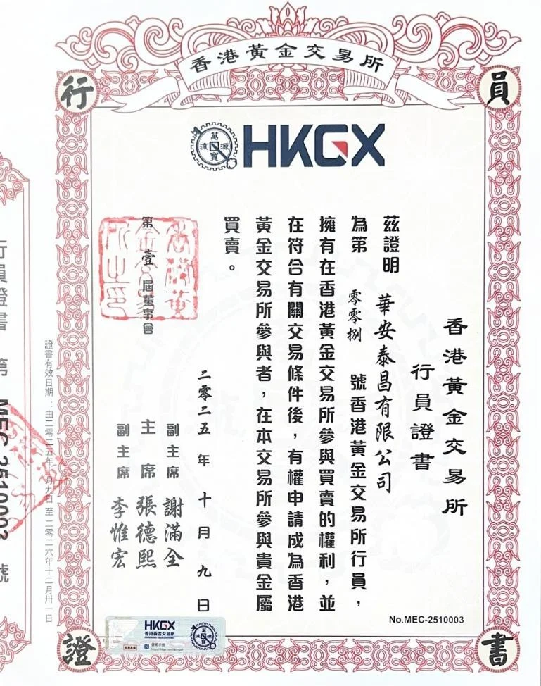 2025年1月1日,香港金银业贸易场正式更名为香港黄金交易所(Hong Kong Gold Exchange,简称HKGX)。这一举动标志着亚洲贵金属交易市场迈向全新时代。在这场深刻的行业变革中,智能交易系统正成为推动市场发展的关键力量。华安泰昌作为香港黃金交易所认可的电子交易行员(行员编号:008)且在业内领先,华安泰昌HATC凭借其创新的交易系统技术和深厚的行业积淀,在这场变革中确立了引领者的地位,为投资者开启智能交易新纪元。